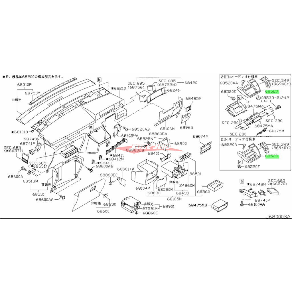 Genuine Nissan Double Din Radio Fascia Surround Panel Fits Nissan E51 Elgrand Ser 2/3 (08/2004-)68261-WL600