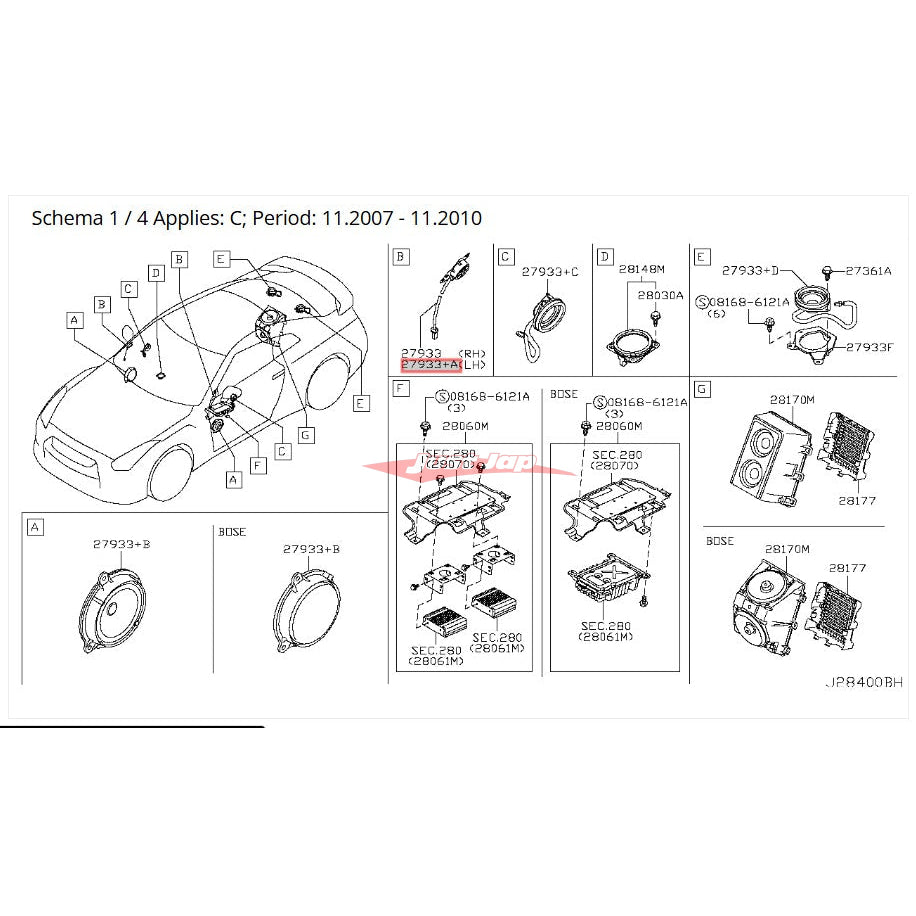 Genuine Nissan Front Upper Door Tweeter Speaker L/H Fits Nissan R35 GTR28149-JK10A