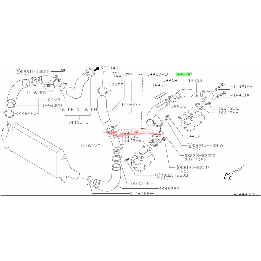 Genuine Nissan Rear Turbocharger Inlet Pipe Hose Fits Nissan R32/R33/R34 Skyline GTR & C34 Stagea 260RS RB26DETT14463-05U13