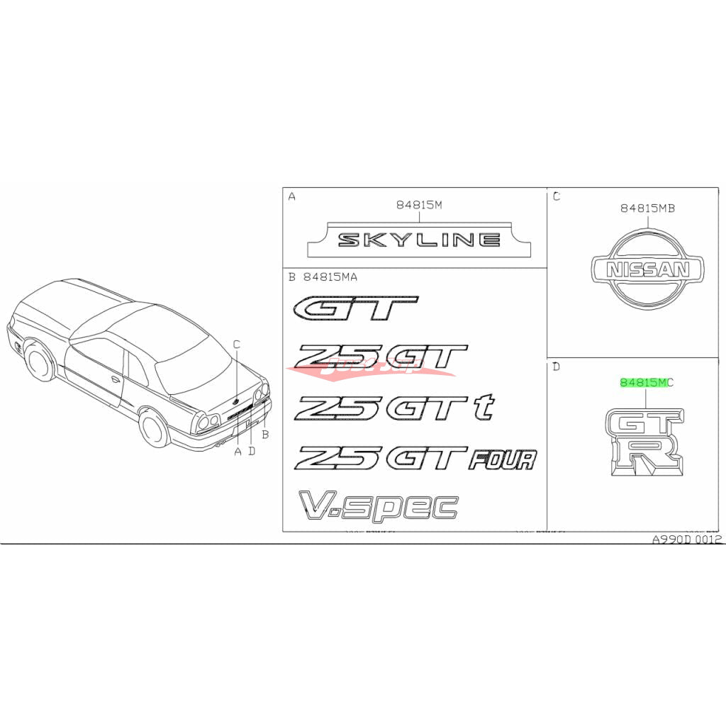 Genuine Nissan GTR Boot Lid Badge Fits Nissan Skyline R34 GTR84896-AA400