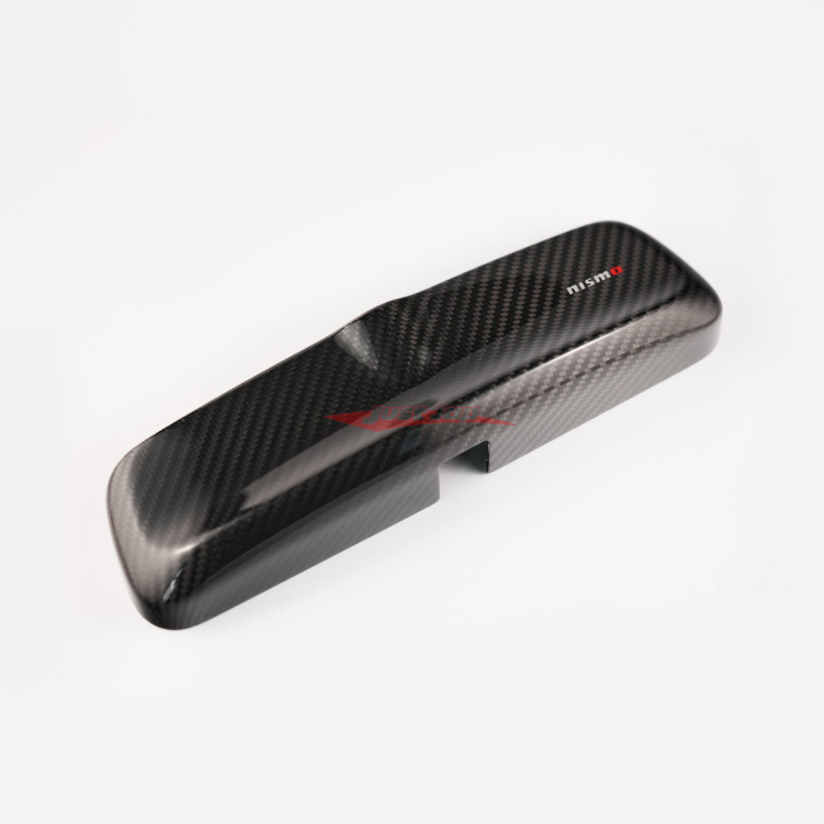 The Nismo dry carbon rear view mirror cover is a racing-inspired improvement to your JDM Nissan vehicle's interior.