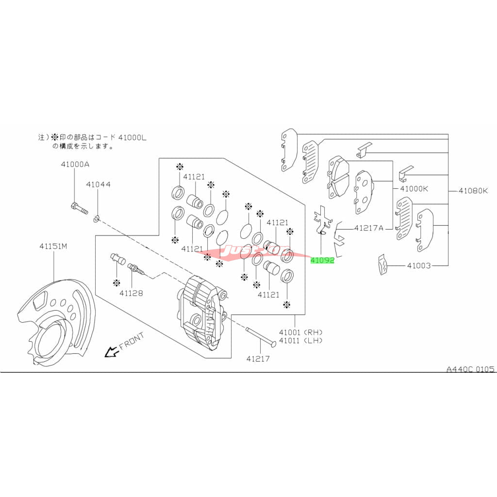 Genuine Nissan Front Brake Caliper Disc Pad Anti Rattle Return Spring Clip Fits Nissan S14/S15, R32/R33/R34 Skyline & Z32 300ZX (Sumitomo 4 Pot)41090-40P02