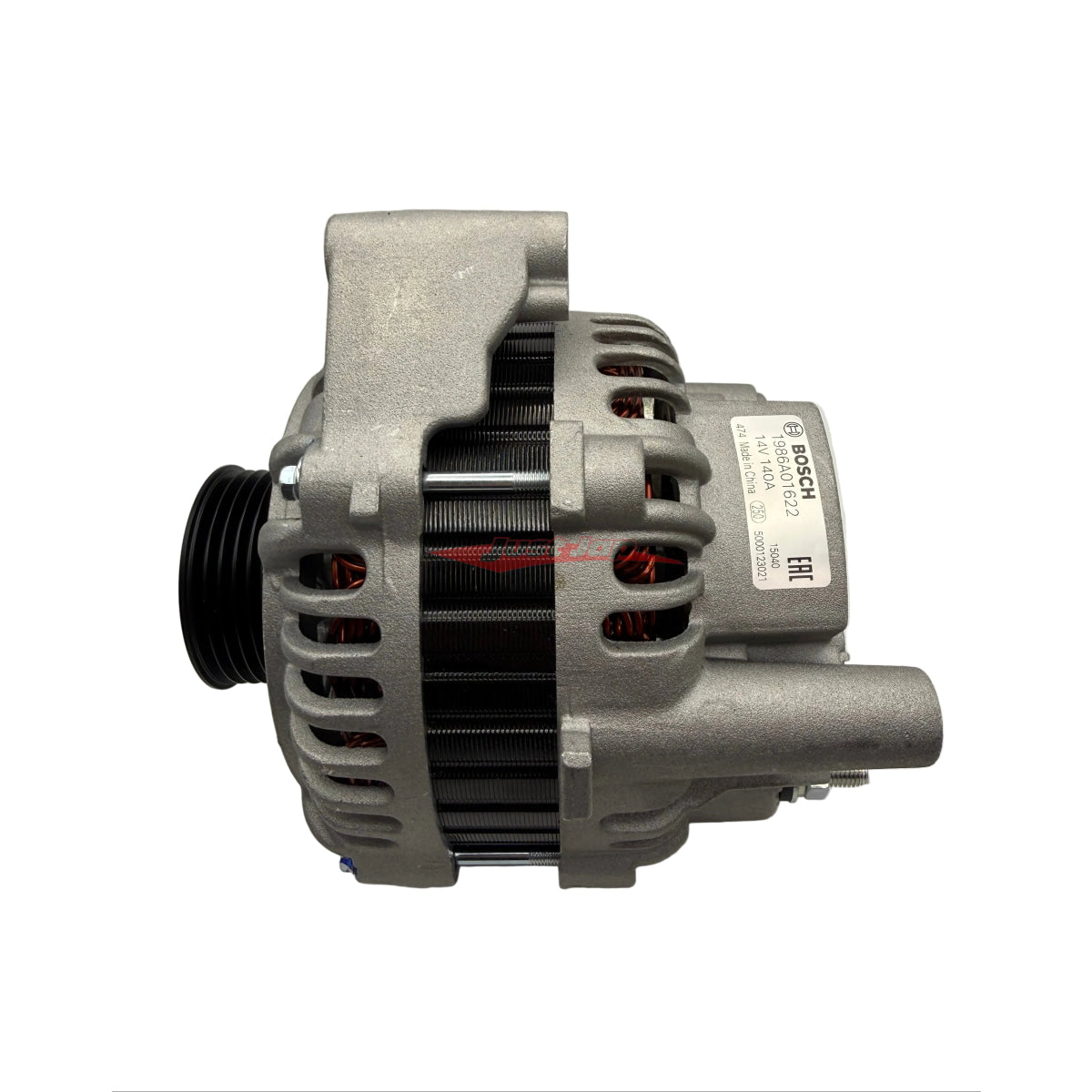 The kit comes with a new Genuine Bosch 12V 140 Amp Alternator, including a custom Billet 6061 Top and Bottom mounting bracket, custom pulley, and anodised hardware.