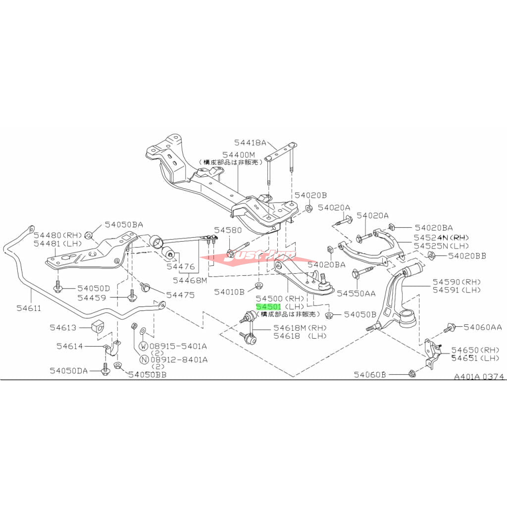 Genuine Nissan Front Lower Control Arm (L/H) Fits Nissan R33/R34 Skyline GTS/T & GT/T (2WD)54501-AA000