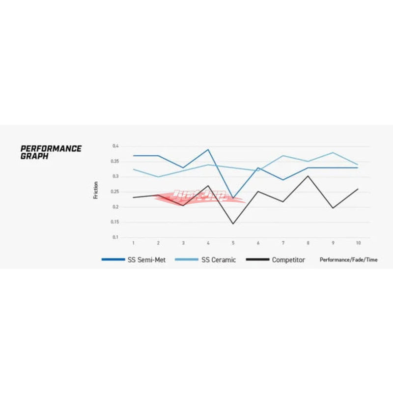 Great attention was given to the development of the friction formulation to achieve a friction coefficient that outperforms the current market standard. Consequently, DBA did not settle on just one formulation, but offers either ceramic or semi-metallic formulations depending on the application and required performance.