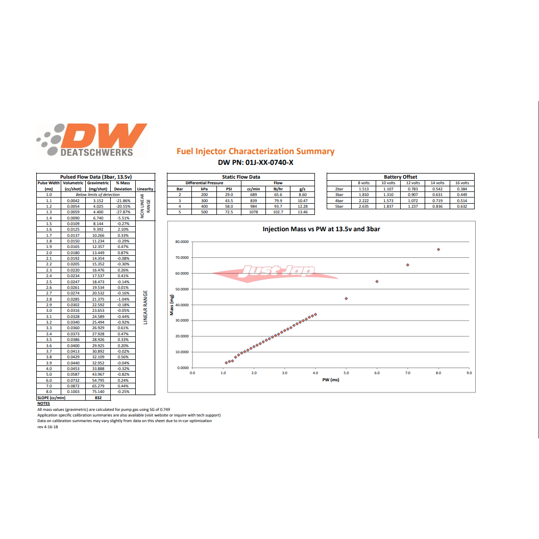 Most aftermarket injectors go straight from the production line to the shipping department. At Deatschwerks, we have added what we consider a crucial step of flow balancing and quality assurance testing on EVERY set of injectors we produce - not just one or two from each lot. Over 40 data points are collected and analyzed on each injector to be sure our customers only receive the best end product. All of our testing is performed in-house on our custom built New Age Technologies injector flow bench.
