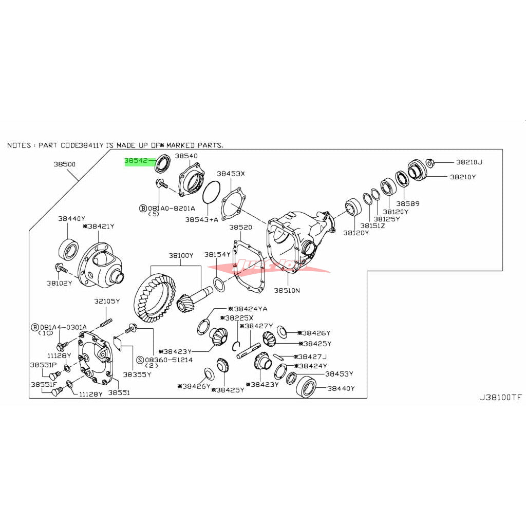Genuine Nissan Front Diff / Driveshaft Oil Seal R/H Fits Nissan R32/R33/R34 Skyline, C34/M35 Stagea & R35 GTR38342-03V01