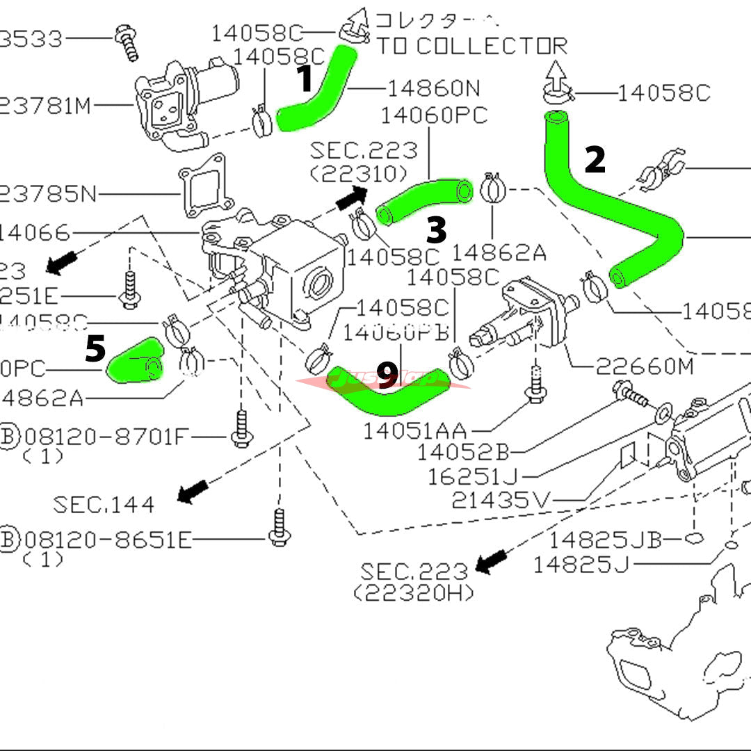 • 2 x Engine Coolant Hoses
