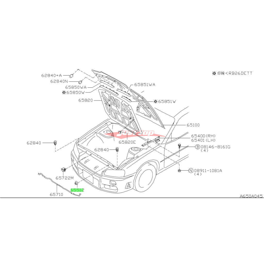 Genuine Nissan Bonnet Hood Support Rod Rubber Grommet Fits Nissan R34 Skyline, S15 Silvia & 200SX65773-AA000