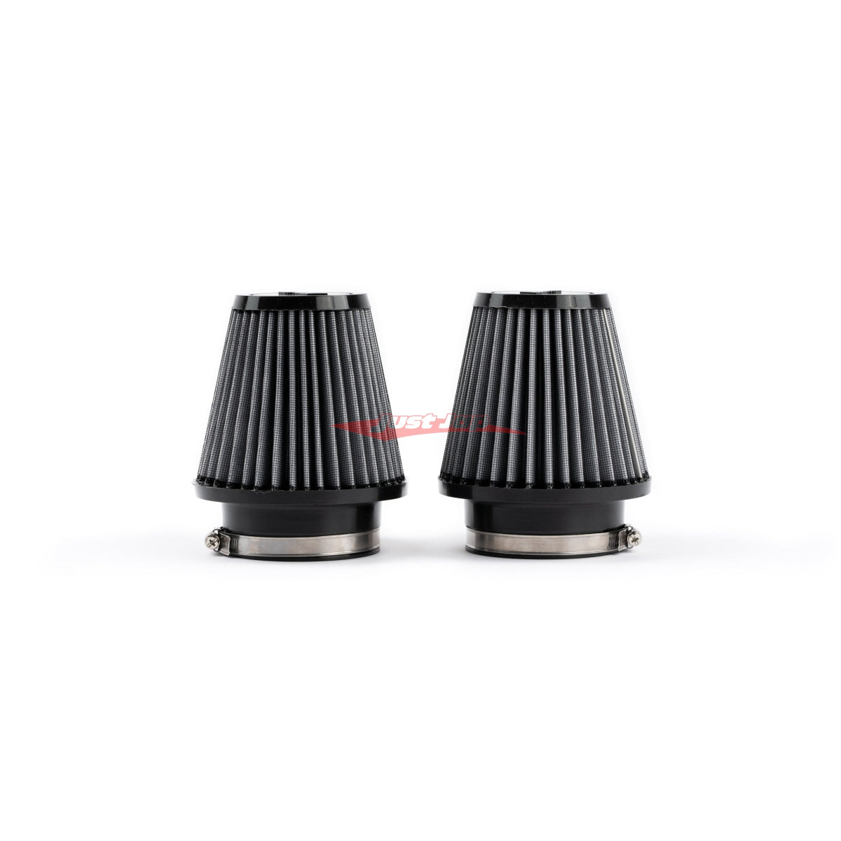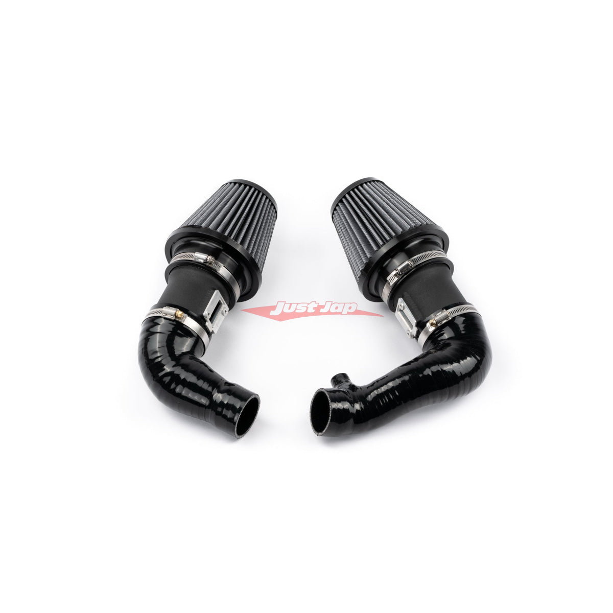 The AMS Performance Nissan Z 80mm Air Intakes are engineered to deliver maximum airflow and performance for your twin-turbocharged VR30DDTT equipped Z. Featuring massive 80mm MAF housings, these intakes unlock an impressive +30 WHP max gain over stock and an average of +24 WHP above 5000 RPM, giving your Z a broad and usable powerband. The open-filter design unleashes an aggressive turbo sound while drawing in more air than the restrictive factory system, and our dry filter media ensures long-lasting reliability with easy cleaning. Installation is simple thanks to precision-fit intake support brackets, keyed silicone inlet tubes and MAF housings, and detailed step-by-step instructions, while optional stock-sized insert sleeves allow for a no-tune setup. For enthusiasts looking to extract serious horsepower, MAF scaling data in our ECU calibration guide is included to make tuning straightforward. Upgrade to the AMS Performance Nissan Z 80mm Air Intakes and experience sharper throttle response, increased power, and the intense sound your VR30 deserves.