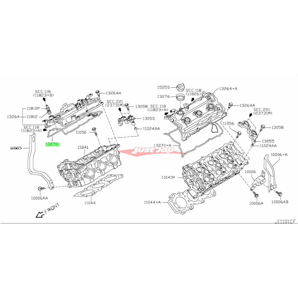 Genuine Nissan Rocker Cover Gasket (Right Side) Fits Nissan E52 Elgrand, V36 Skyline, Y51 Fuga, Z33 350Z Ser. 2 (VQ25HR/VQ35DE/VQ35HR)A3270-JK20A