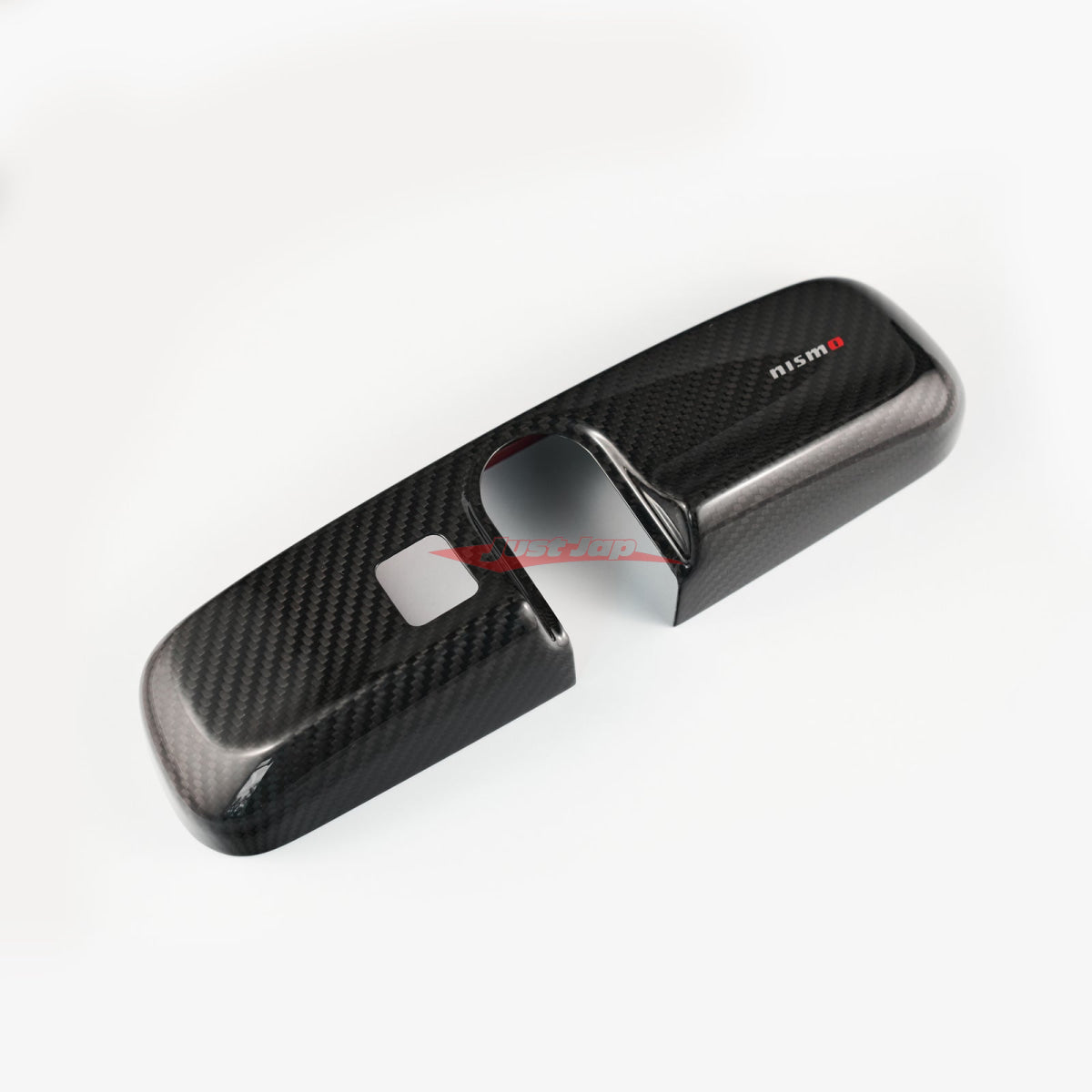 The Nismo dry carbon rear view mirror cover is a racing-inspired improvement to your JDM Nissan vehicle's interior.