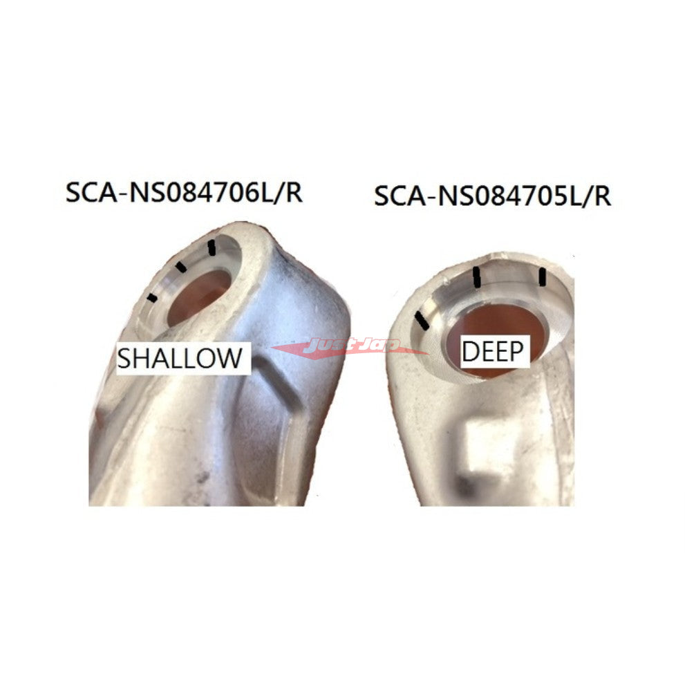Note: Please inspect your vehicle to measure the correct recess depth of the upper ball joint area as per the images due to possible changes made to your vehicle over its history. Normally, vehicles from 2001-2004 use the Deep type & vehicles from 2005-2008 are the Shallow type.
