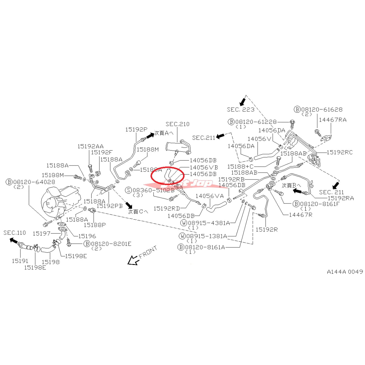 - Front Turbo Water Line Hose to Upper Radiator Hose Outlet