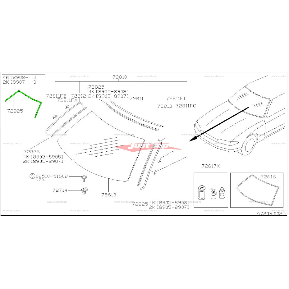 Genuine Nissan Front Windscreen Mould Fastener Fits Nissan R32 Skyline (Coupe)72725-04U10