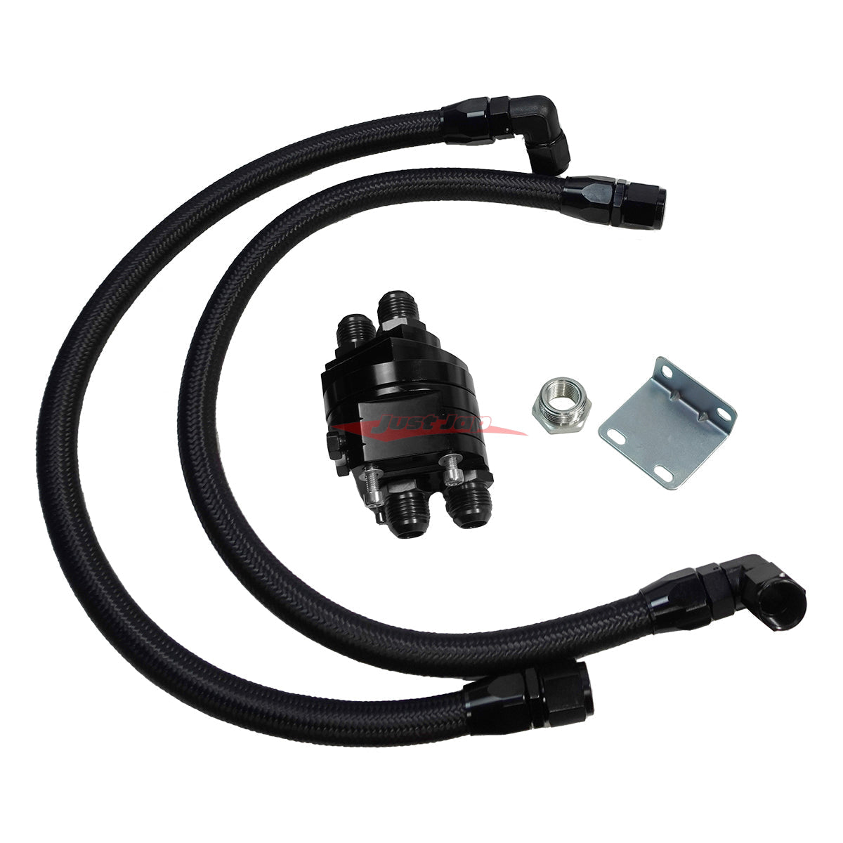Cooling Pro Oil Filter Relocation Kit (Black) - Universal Fitment (3/4UNF-16 & M20-P1.5)MGP-9070B+HOSE-BLACK