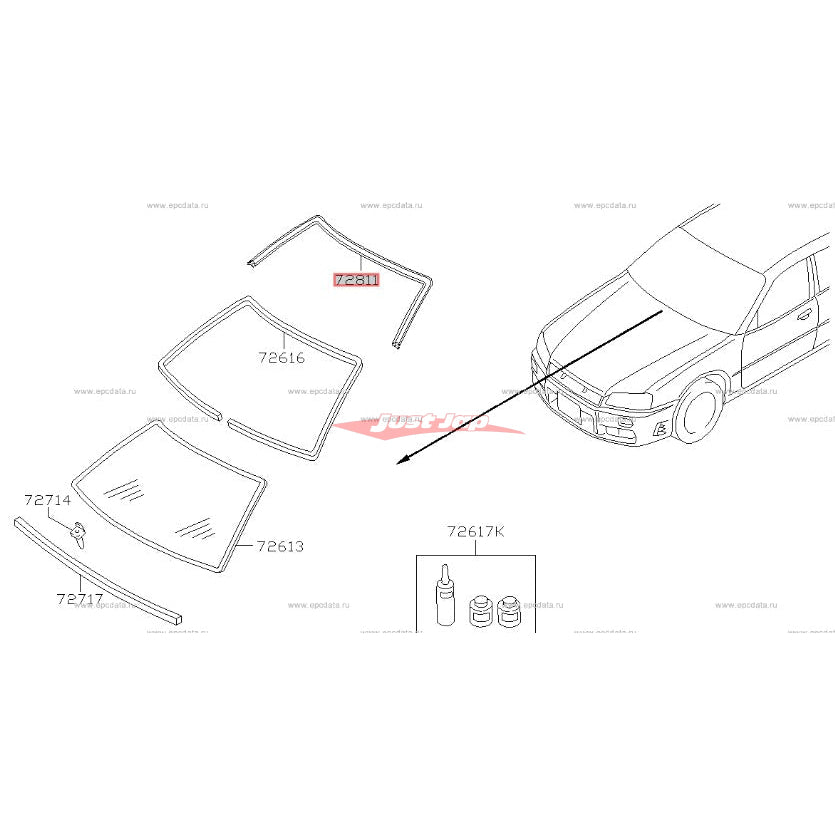 Genuine Nissan Front Windscreen Moulding Upper Centre Fits Nissan R34 Skyline (Sedan)72752-AA010