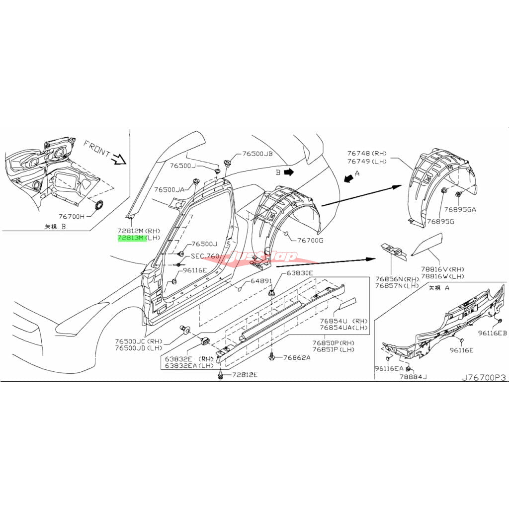 Genuine Nissan Front Windscreen Pillar Trim / Roof Turret Moulding R/H (KAD Gunmetal) Fits Nissan R35 GTR CBA 2007-76836-JF01B