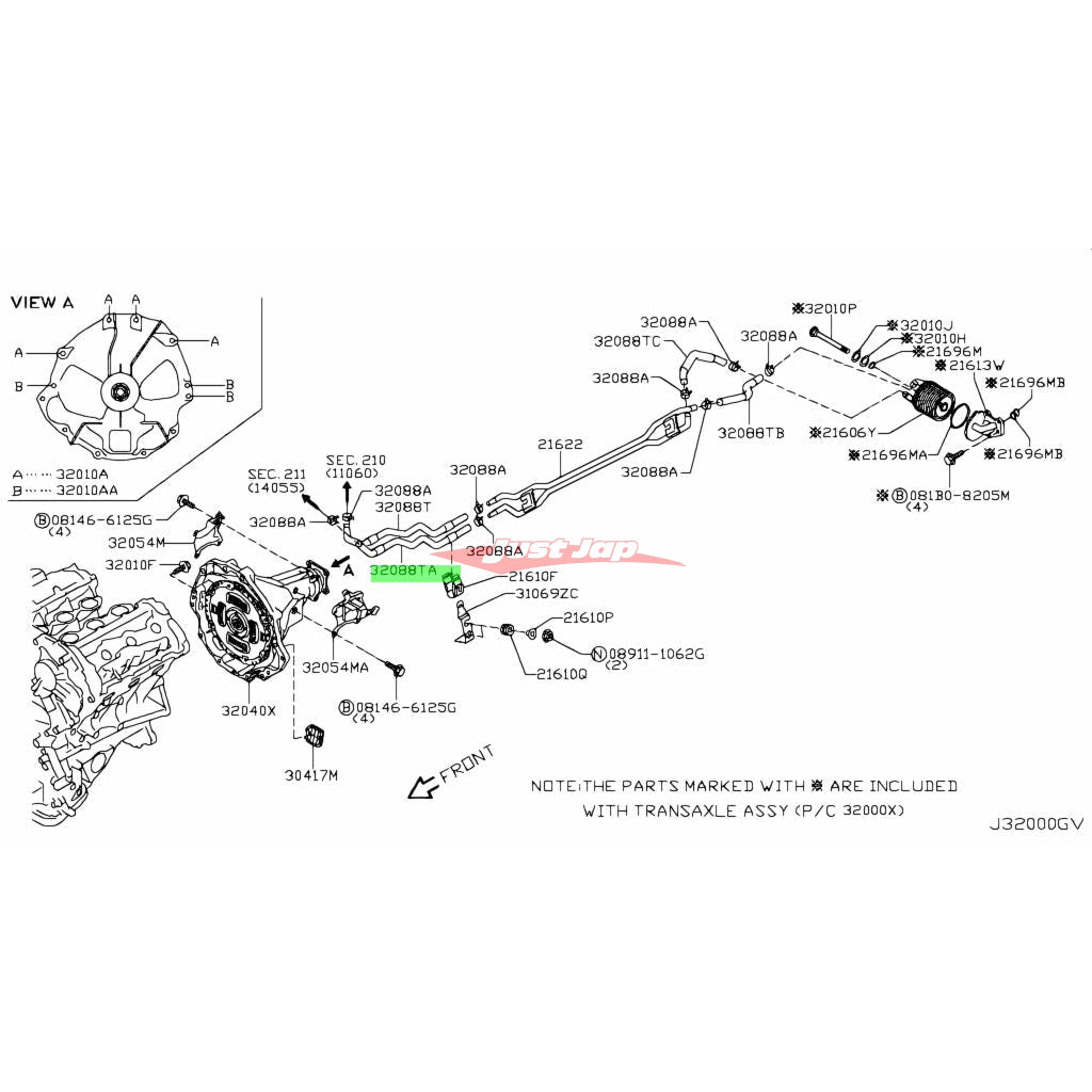 Genuine Nissan Front Transmission Water Cooler Line Hose "B" Fits Nissan R35 GTR14055-JW90B