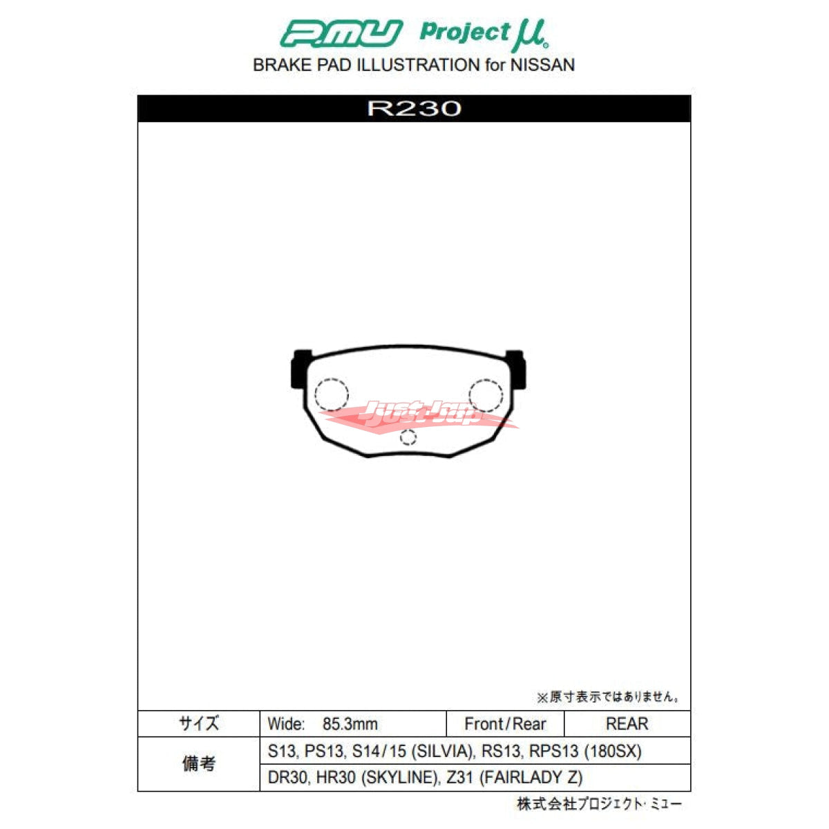 Project MU D1 Spec Rear Brake Pads Fits Nissan S13/S14/S15 Silvia, 180SX & 200SXR230-D1