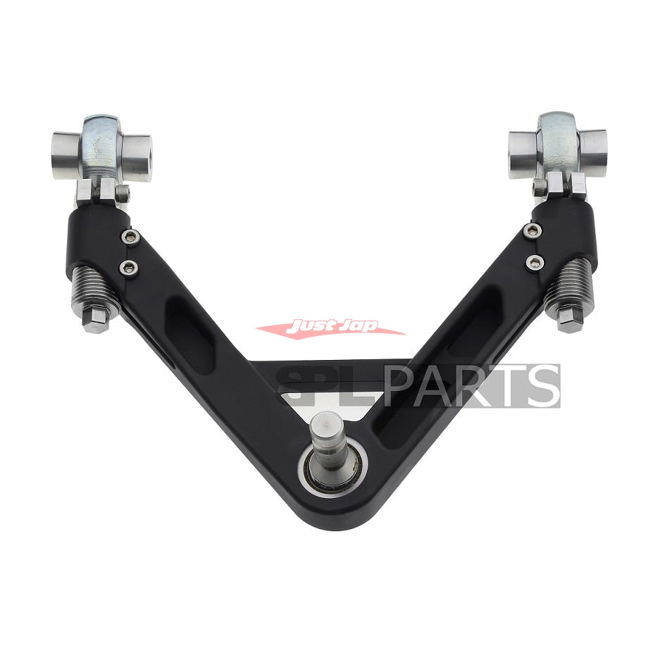 SPL front upper arms are designed with dual chassis mount adjusters providing camber and caster adjustment while remaining fully attached to the car.