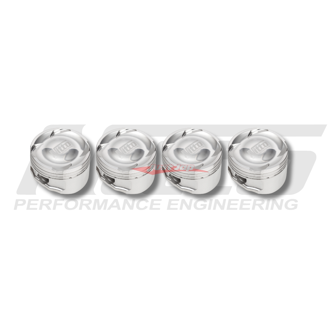 Nitto pistons are made to our own specifications in conjunction with CP Carrillo and are cut from CP’s low silicon content 2618 aluminium and Turbo HD forging (where applicable). Additionally, our pistons are equipped with a PVD-coated ring set that delivers the best bore sealing capabilities for boosted applications, eliminating virtually all blow-by while reducing friction against the cylinder wall. As part of the piston kit, CP’s upgraded 9310 material wrist pins are standard across our range. The pins are 100% Rockwell tested, case hardened, and cryogenically treated in order to enhance their material grain structure and overall strength.