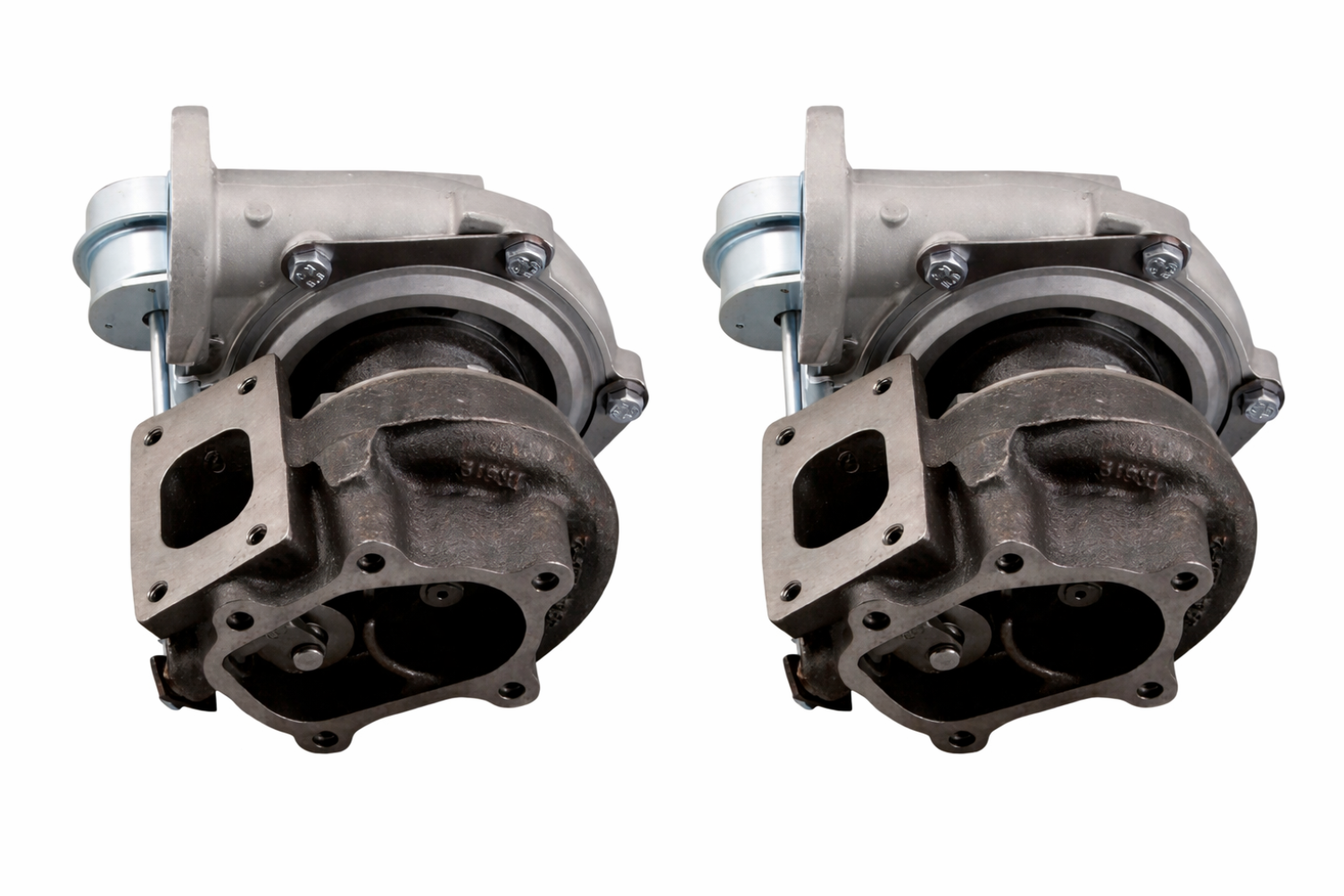 - Factory Turbo Orientation - Oil Feed and Water Lines from the factory Turbochargers can be re-used, and the orientation is in an identical position to the factory setup, allowing for easy re-fitment.