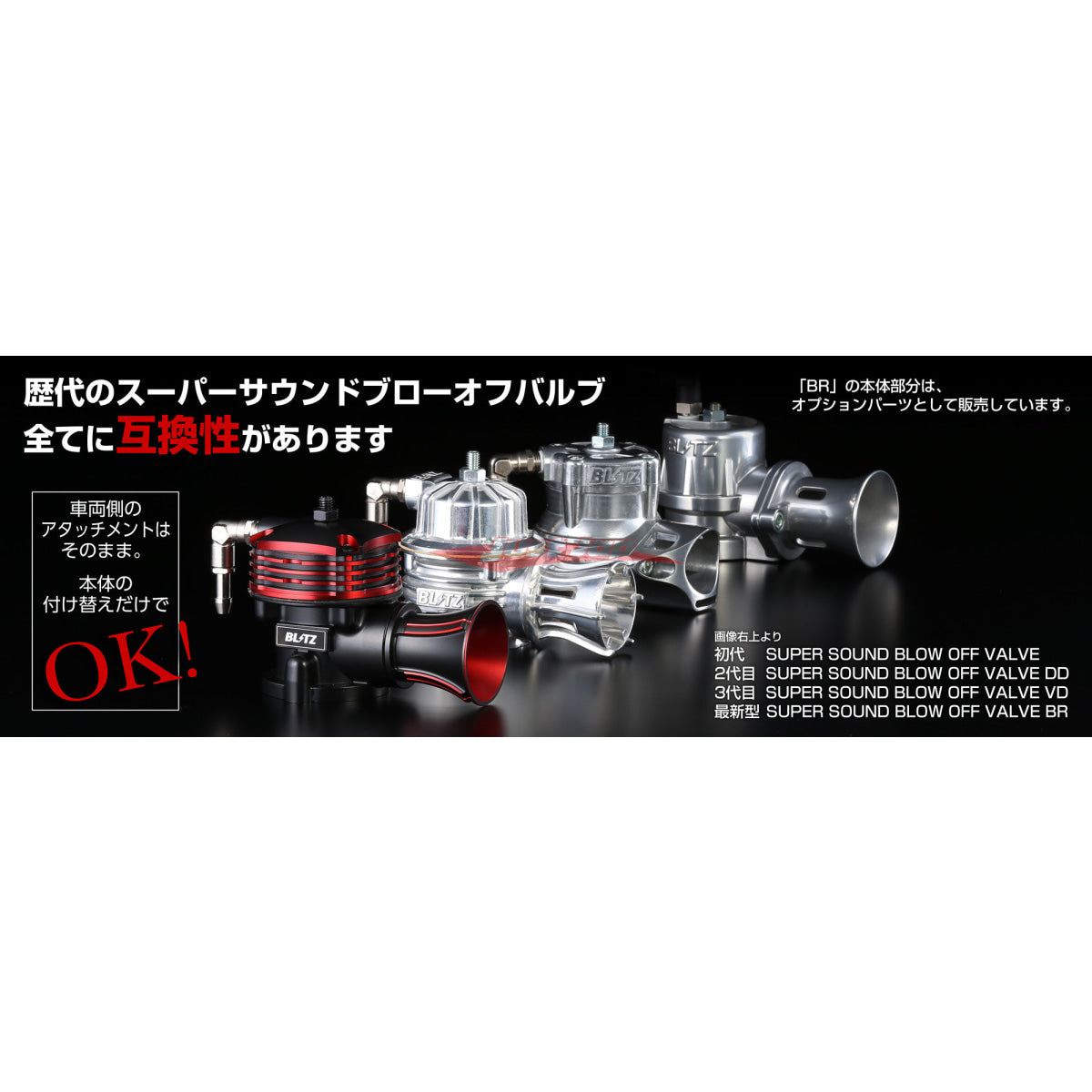 "SUPER SOUND BLOW OFF VALVE BR" inherits Blitz's unique "Super Sound" with 25 years of experience, and it is possible to fully demonstrate the original performance of the turbocharger, such as adopting a venturi funnel and a new design. It's a blow off valve.
