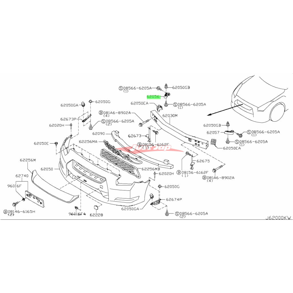 Genuine Nissan Front Bumper Side Stiffener R/H Fits Nissan R35 GTR CBA (-10/2010)62058-JF01A