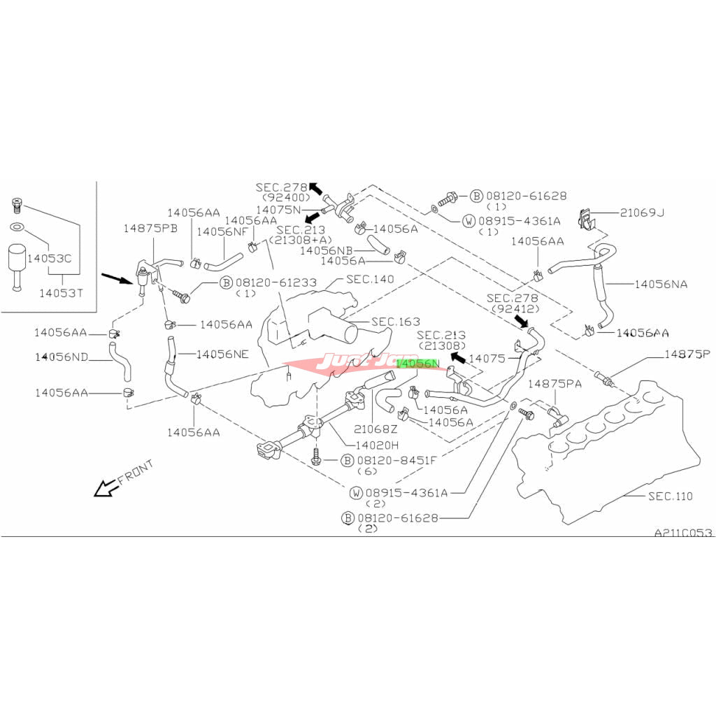 Genuine Nissan Front By Pass Pipe to Engine Block Heater Hose Fits Nissan R33 Skyline, C34/C35 Laurel & Y34 Gloria RB25DET14056-21U10