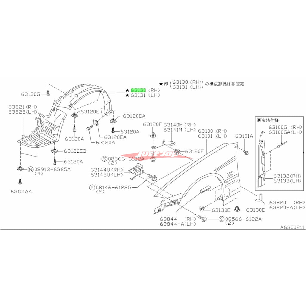 Genuine Nissan Front Inner R/H Guard Liner Front Section Fits Nissan S15 Silvia & 200SX63842-85F00