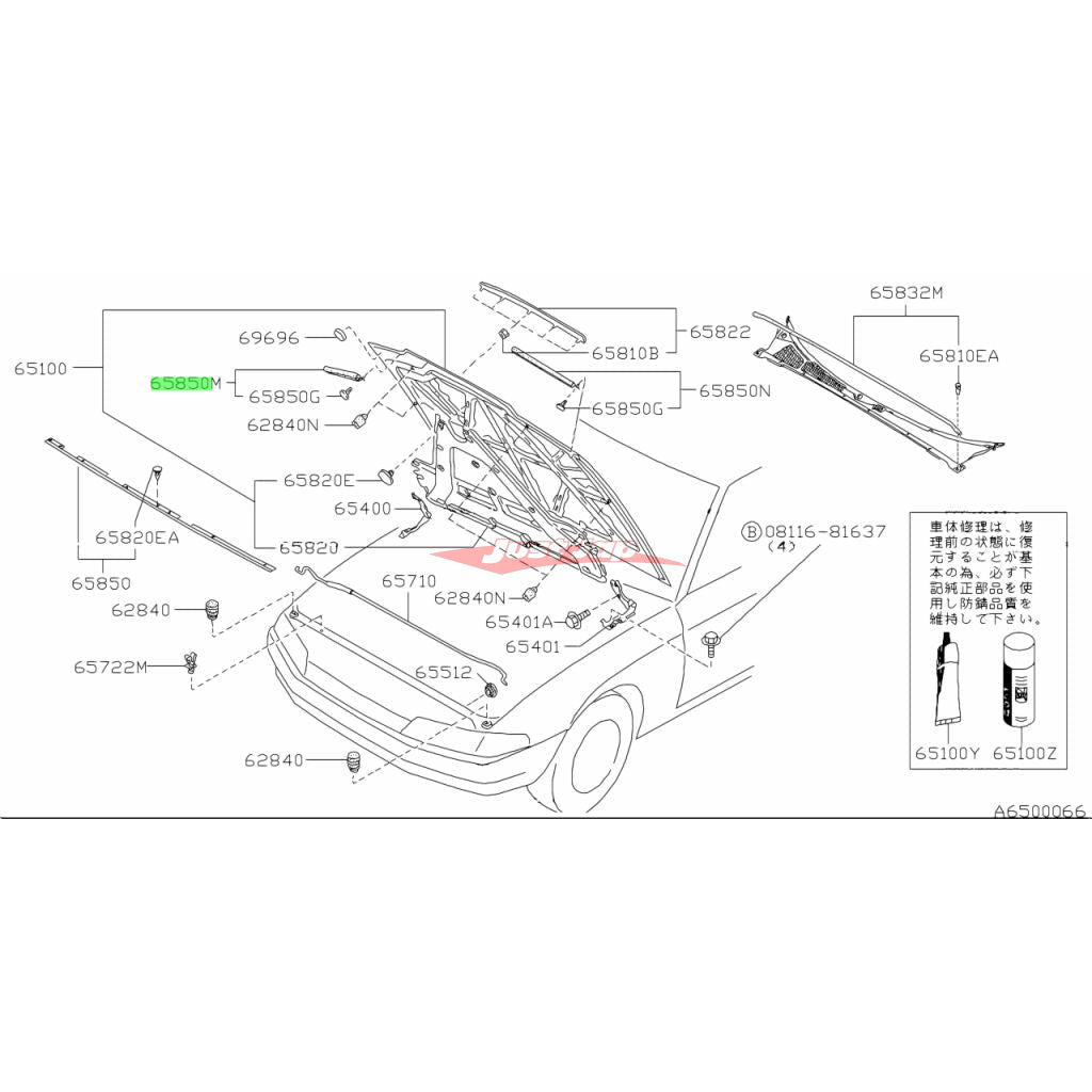 Genuine Nissan Headlight Bonnet Seal R/H Fits Nissan R32 Skyline GTS/T & GTR65850-01U00