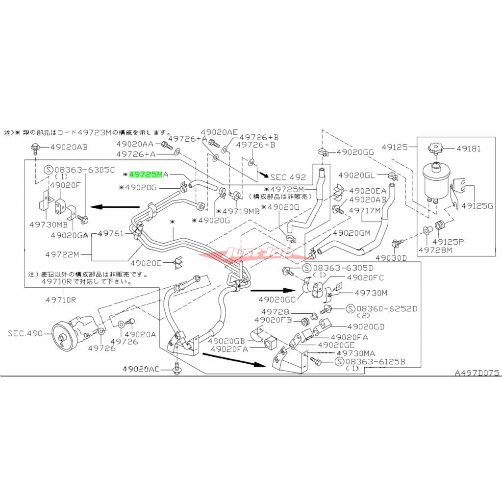 Genuine Nissan Power Steering Hose Return Fits Nissan R33 Skyline GTS/T49725-21U00