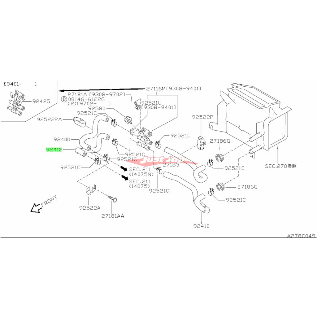 Genuine Nissan Lower Outlet Heater Hose to Engine Fits Nissan R33 Skyline, C34 Stagea & C34 Laurel RB25DET92412-21U00