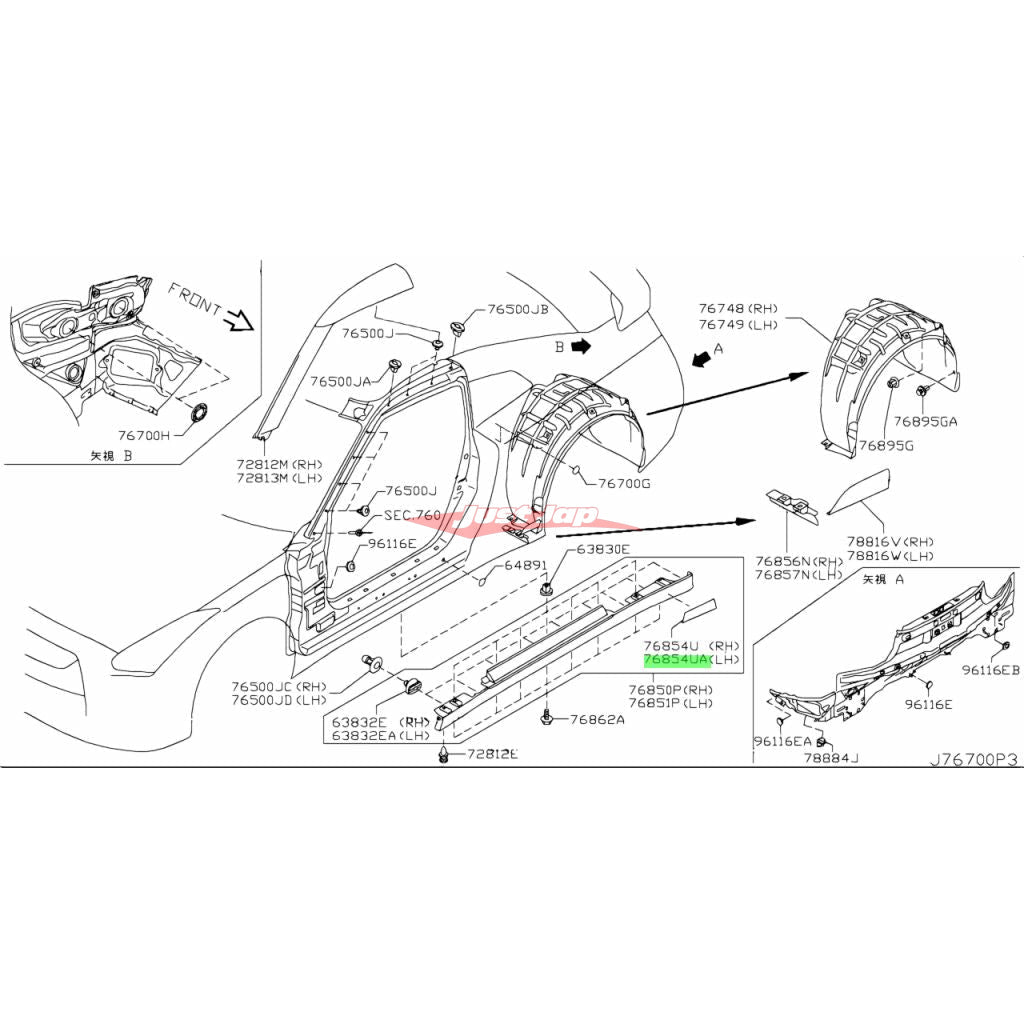 Genuine Nissan Rear Side Skirt Clear Stone Chip Protector L/H Fits Nissan R35 GTR76855-JF00A