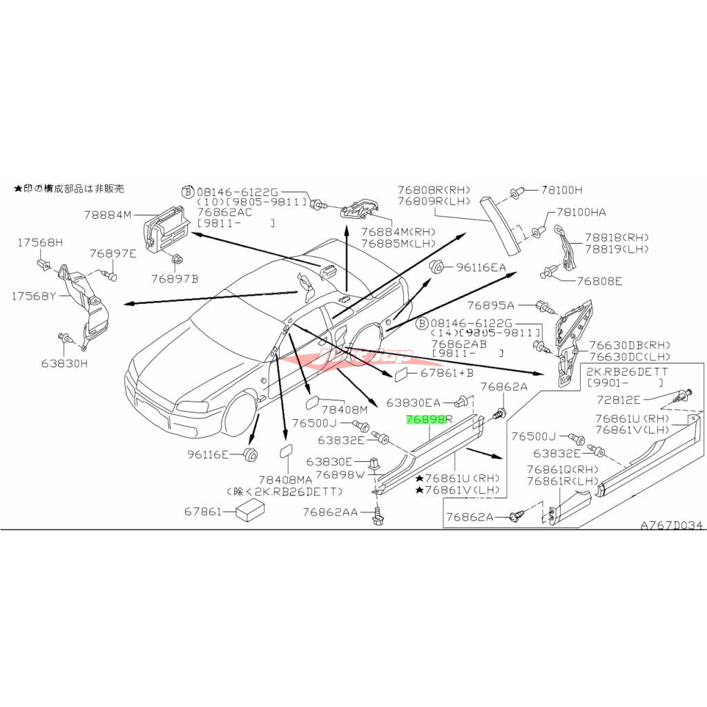 Genuine Nissan Rear Side Skirt Upper Body Seal (Rear) Fits Nissan R34 Skyline (Coupe)76898-AA100
