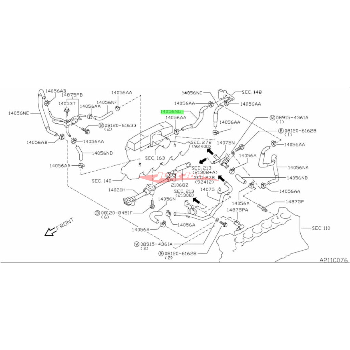 Genuine Nissan Throttle Body Rear Water Hose Fits Nissan R34 Skyline, C34 Stagea , C34/C35 Laurel & Y34 Gloria RB25DNissET Neo14056-AA505