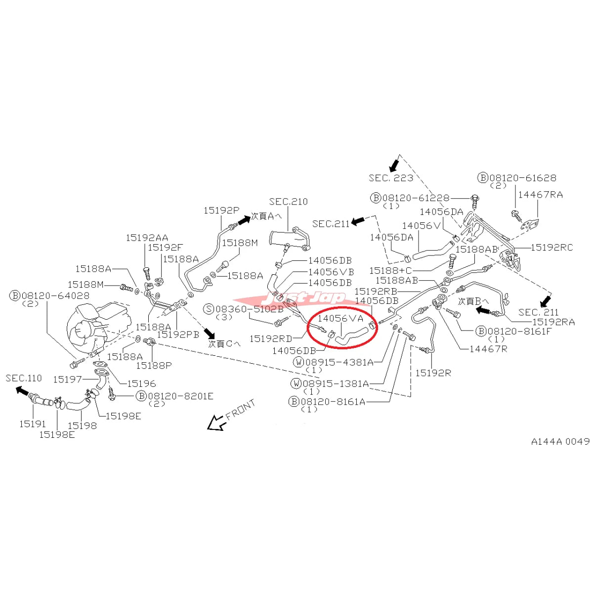 Genuine Nissan Turbo Charger Front Water Hose Fits Nissan Skyline GTR (Long Type)14055-05U21