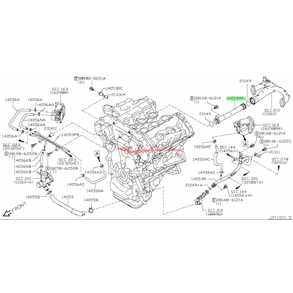 Genuine Nissan Water Bypass Outlet Pipe Fits Nissan R35 GTR (VR38DETT)21021-JF00A