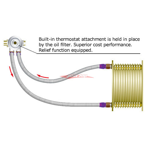 HKS Oil Cooler S Type includes a built-in thermostat attachment, which is held in place by the oil filter. Also, it provides superior cost performance.