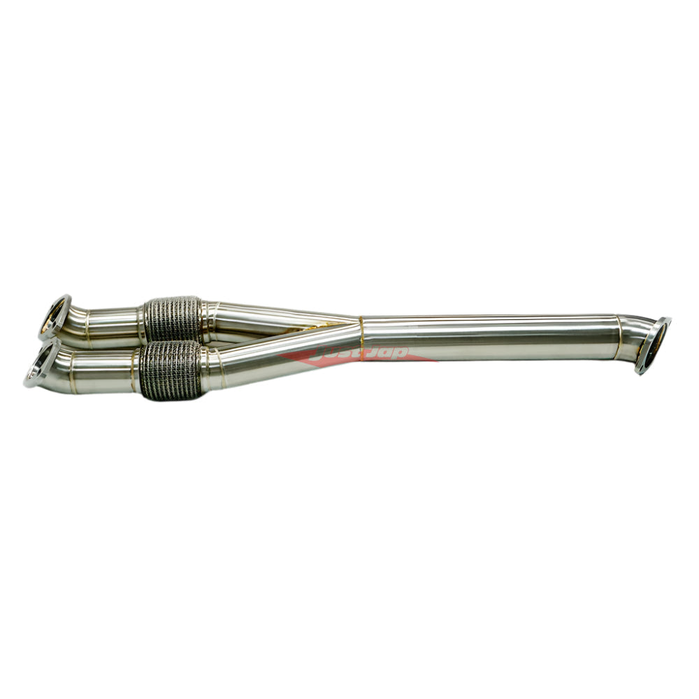 JJR Stainless Steel SS304 76mm > 90mm Centre Mid Y Pipe (De-Cat) Fits Nissan R35 GTR (2007-)