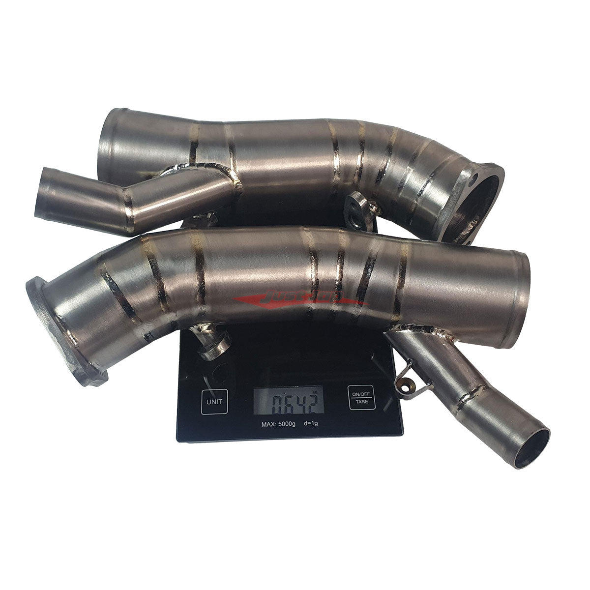 The JJR Titanium intake pipe set has a weight reduction of over 50% from the OEM cast intake pipes weighing in at just over 642gm!!