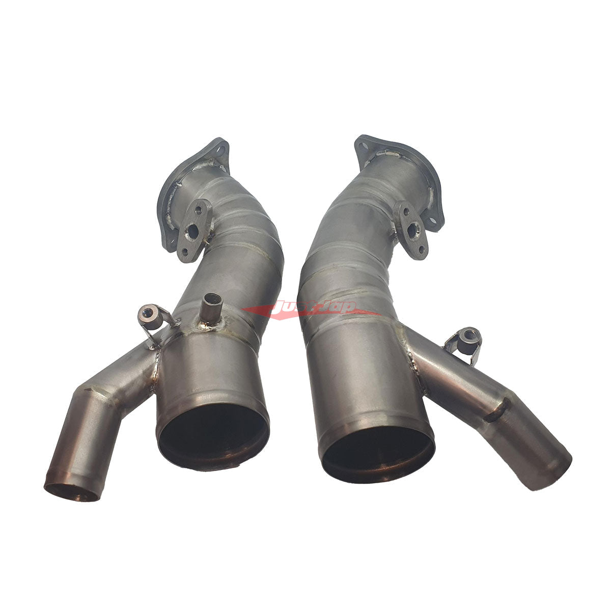 Our JustJap Racing lightweight titanium intake pipe set is a must-upgrade for the Nissan R35 GTR VR38DETT engine for increased airflow and horsepower over the much smaller restricted factory Nissan intake pipes.