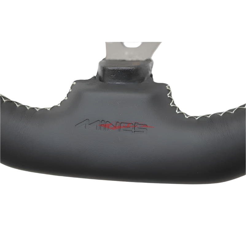 Mines Original Leather Steering Wheel (D Type Grey Stitching) Fits Nissan R34 Skyline GTR, S15 Silvia & 200SXMINESSTEERWHEEL-R34-GRY