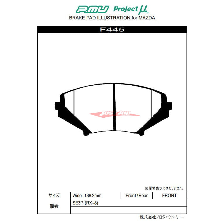 Project MU NS400 Front Brake Pads Fits Mazda RX-8 SE3PF445-NS400